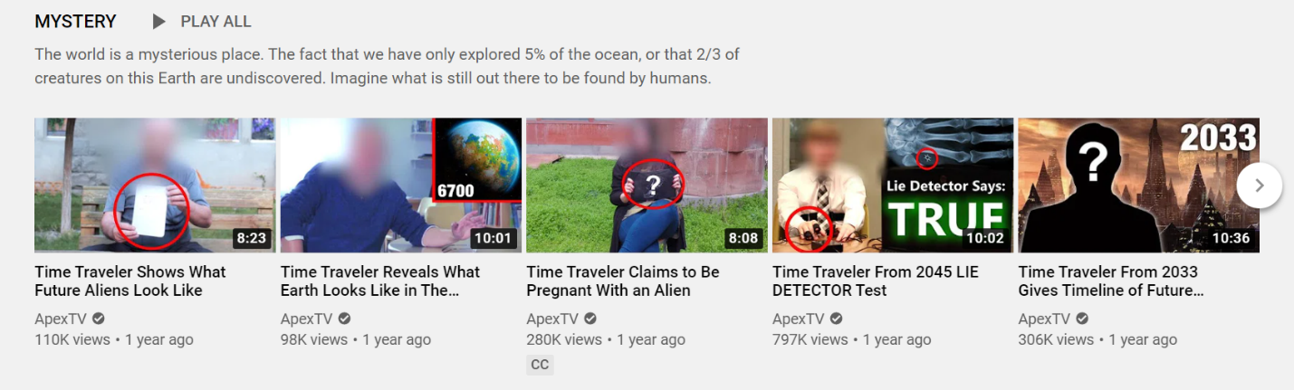სავარაუდოდ, Intermedia-ზე გამოქვეყნებული მასალა Youtube-ზე გავრცელებული სხვადასხვა ვიდეოების ნაკრებს წარმოადგენს. ვიდეოების მსგავსი ნაკრები პირველად Youtube-ზე 2015 წელს გავრცელდა, Youtube-არხი ApexTV-ის მიერ. არხის აღწერაში ვკითხულობთ, რომ ის ძირითადად პარანორმალური მოვლენებისა და კონსპირაციული თეორიების გაშუქებით არის დაკავებული და ფარავს ისეთ თემებს, როგორიცაა: უცხოპლანეტელები, ტელეპორტაცია, დროში მოგზაურობა და ა.შ.