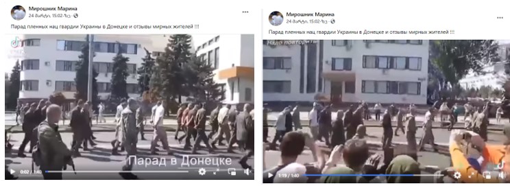 На самом же деле, кадры были засняты в 2014 году, и на них запечатлен «коридор стыда» для украинских солдат, организованный сепаратистами 24 августа, в день независимости Украины, в оккупированном Донецке.
